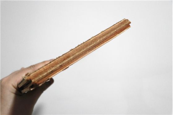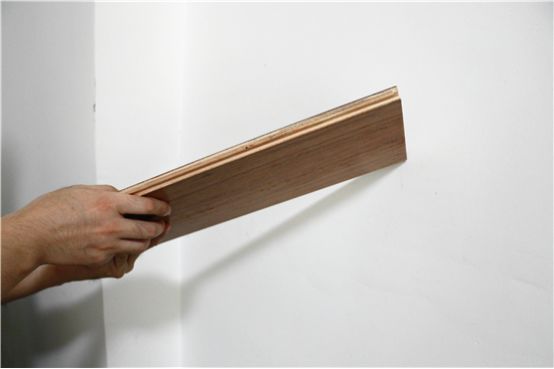 此款產品采用平扣方式。每個邊角的細節處理都非常精細,凹槽平整光滑,無毛刺。這樣使得板與板之間的摩擦係數更小,避免了地板的響聲問題。小編現場徒手將兩片地板進行拚接,過程非常順暢,兩塊地板牢牢相嵌,用手敲打不輕易鬆落。懸空拿起,即可做到牢固拚接,毫無脫落之感。